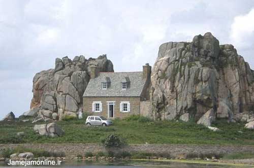 تصوير ديدني خانهاي در ساحل پورت بلان در منطقه پورت – دارمور در فرانسه كه ميان دو صخره ساخته شده است.