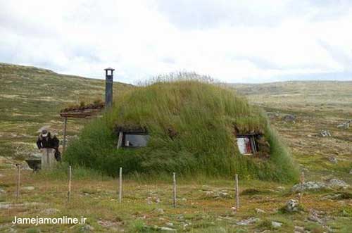 تصوير ديدني يك خانه در منطقه هاردانگر در نروژ كه با ابتكار صاحبش سرتاسر آن پوشيده از علف است.